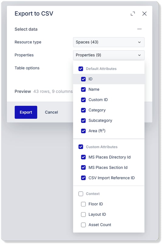 This article will show you how you can export default and custom attribute values tied to various resources of your Archilogic floor plan as a CSV file