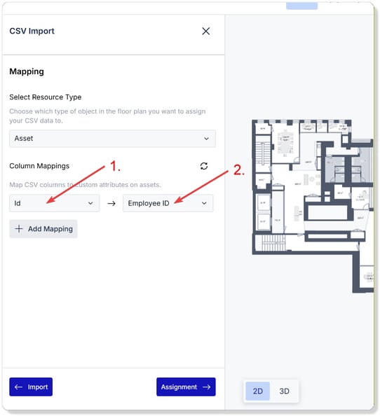 You can now either add an additional mapping by left-clicking the + Add Mapping button and connect a different column from your CSV file to a different custom attribute field, or you can click the blue Assignment button at the bottom to continue.