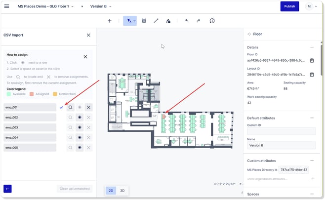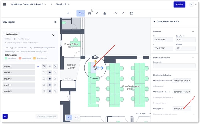 Selecting Space will allow you to map data to individual spaces such as offices or meeting rooms, etc.